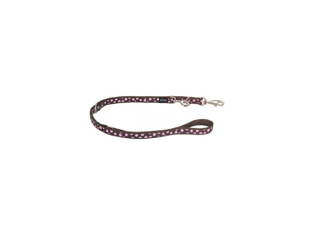 Red Dingo vodítko přepínací – Pink Spots on Brown – 25 mm x 2 m