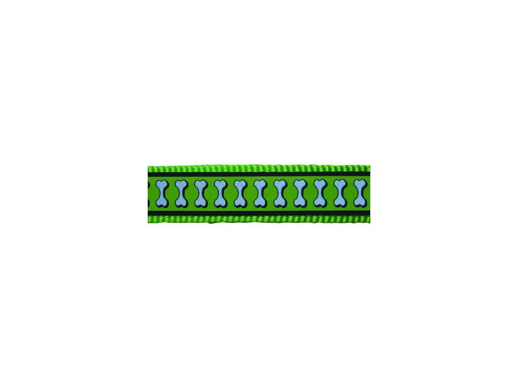 Red Dingo vodítko přepínací reflexní – Bones Lime – 20 mm x 2 m