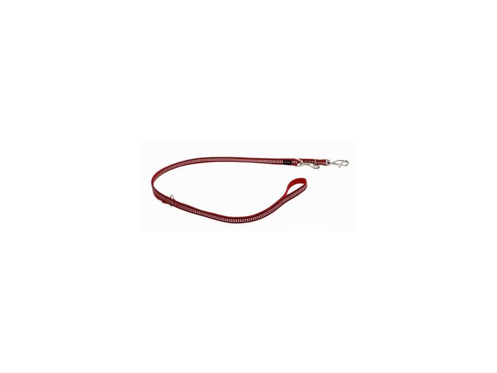 Přepínací vodítko Red Dingo. Délka je nastavitelná pomocí dvou karabin v rozmezí 1,0 – 2,0 m. Šířka popruhu 12 mm.Vodítka Red Dingo jsou vyrobené z kvalitního nylonového popruhu. Okraje jsou hustě tkané pro ještě větší odolnost vůči oděru.
