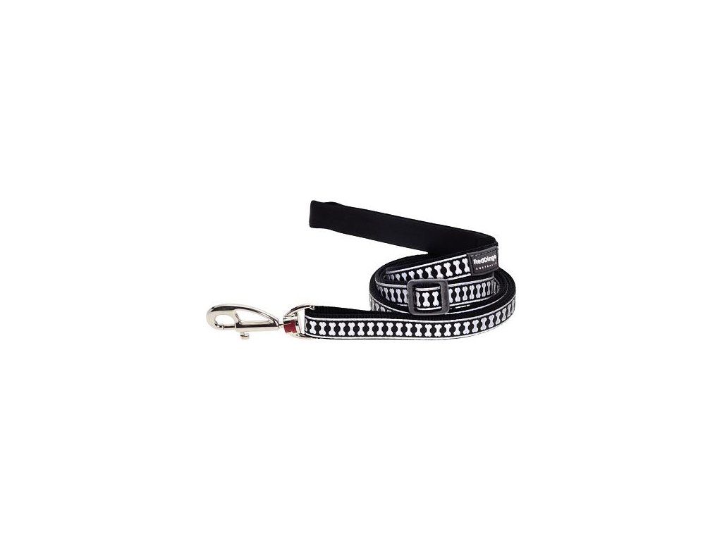 Red Dingo vodítko reflexní – Bones Black – 20 mm x 1,8 m