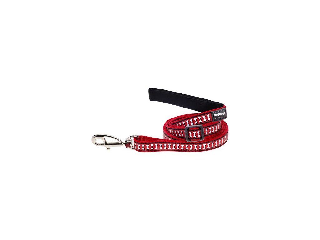 Red Dingo vodítko reflexní – Bones Red – 15 mm x 1,8 m