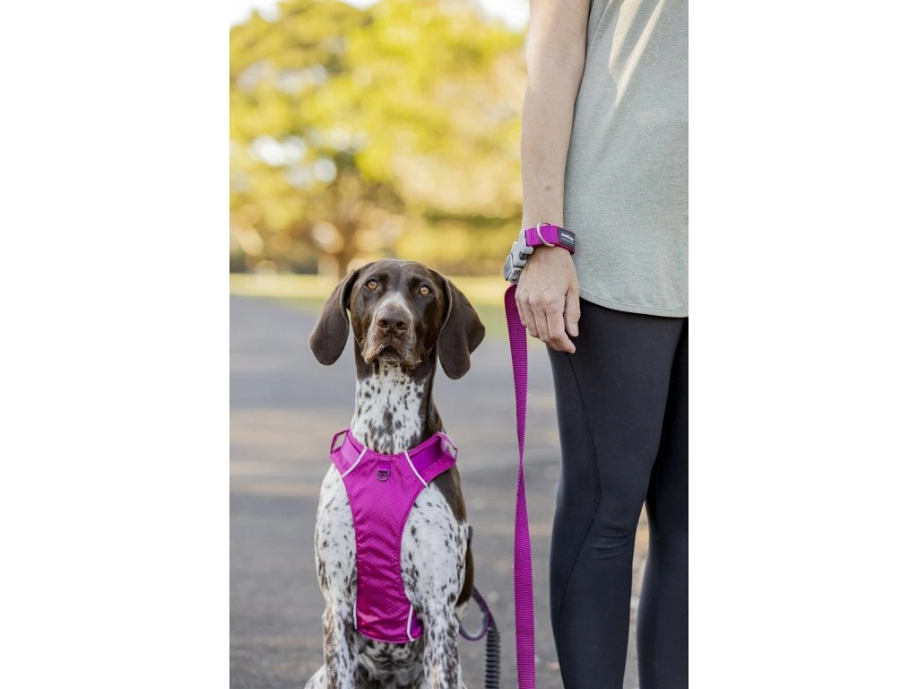 Pružná guma účinně tlumí nárazy, díky čemuž zvyšuje pohodlí při běhu či svižné chůzi a chrání krční páteř psa.