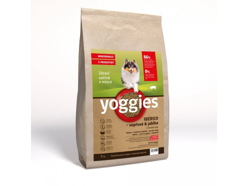 5kg Yoggies MINIGRANULE Ibérico vepřové maso s jablky lisované za studena s probiotiky