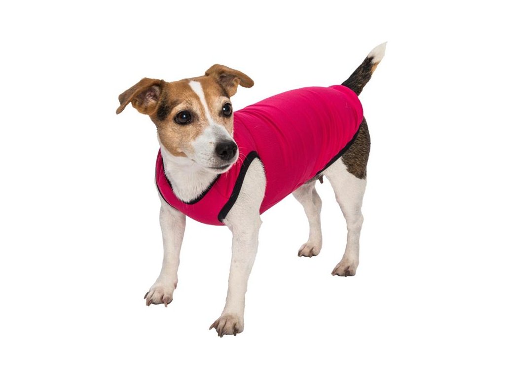 Pružné lemy na okrajích tílka zajišťují přilnutí oblečku na tělo pejska. Obleček nijak neomezuje psa v pohybu.