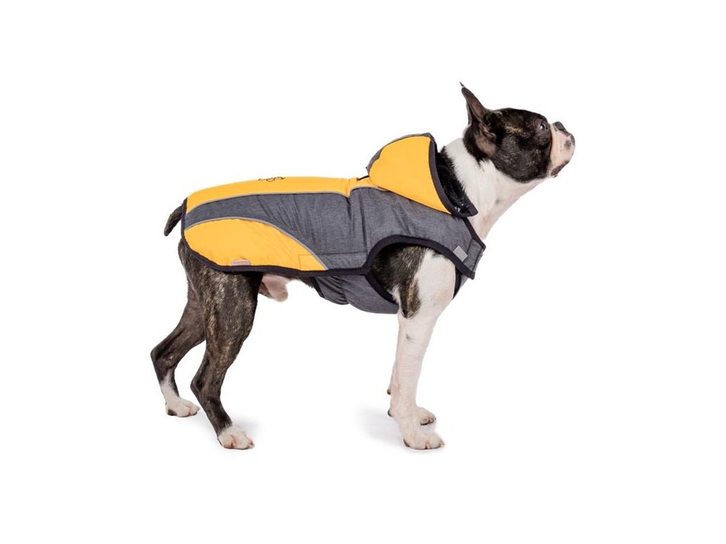 Zateplená vesta Esmé Lux II ochrání vašeho psa před chladem, větrem, deštěm i sněhem. Svrchní vrstva z bundové tkaniny s voděodolným zátěrem je zateplená vafixem a podšitá měkkým flanel fleecem, který nezacuchává srst. Obleček je tvarovaný tak, aby psa neomezoval v pohybu, a přitom chránil všechny důležité partie jeho těla. Gumičky na zadní nohy a ocásek zajišťují, aby vesta neodstávala v zadní části, a elastický lem brání úniku tepla po celém obvodu oblečku. Za krkem je otvor pro připnutí vodítka k obojku a poutko pro zavěšení (při sušení atd.). Oblékání je snadné a rychlé díky systému suchých zipů: oboustranné zapínání pod krkem umožňuje optimální nastavení obvodu krční části a zipy na bocích umožňují zapnutí břišní části zleva i zprava. Pro bezpečnější venčení za zhoršené viditelnosti je vesta opatřena reflexními prvky.