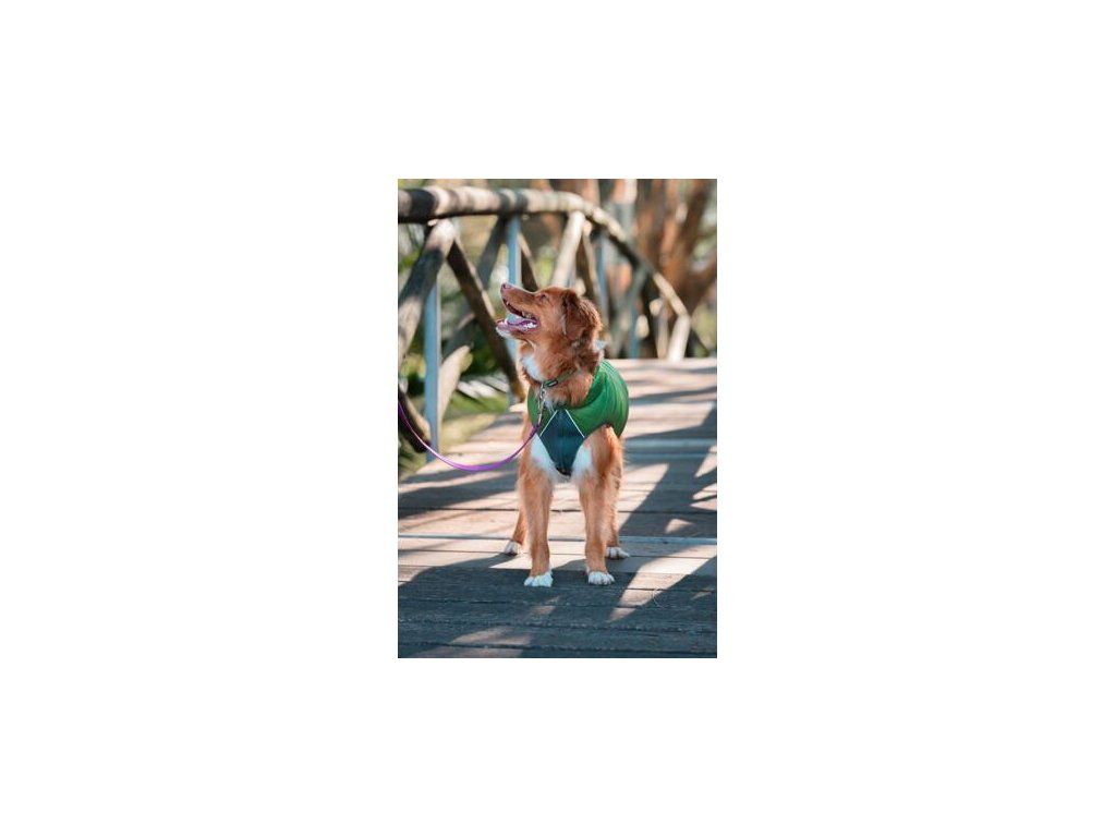 Je celorozepínací, snadno se obléká a její střih s nízkým límečkem umožňuje připnutí vodítka ke klasickému obojku, na který je pes zvyklý.